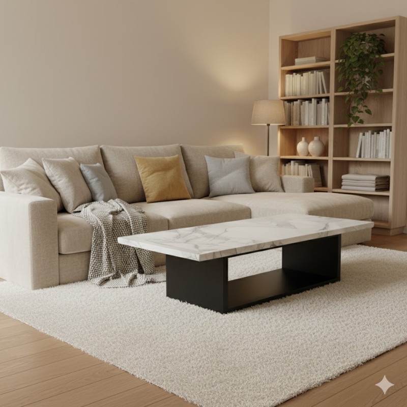 Com linhas puras e um design atemporal, a Mesa de Centro Minimal é a essência do luxo discreto. O tampo em rocha contrasta elegantemente com a base vazada, criando uma sensação de leveza. É a peça ideal para quem busca funcionalidade e sofisticação em um design clean.