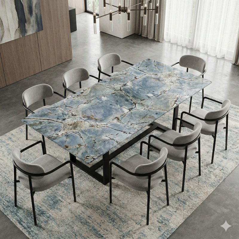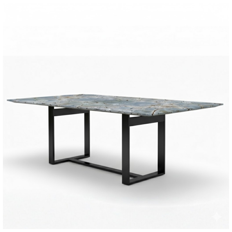 Com um design que equilibra o robusto e o sofisticado, a Mesa de Jantar Retangular Atlas é a definição de estilo industrial-moderno. O tampo em rocha repousa sobre uma base de metálica com linhas geométricas firmes, criando uma peça de destaque.
